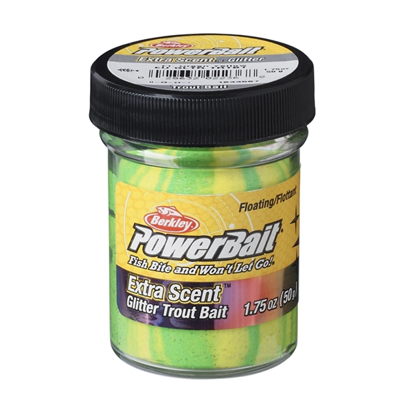 BERKLEY PowerBait® Glitter Trout Dough -syöttitahna on tehokas ja käytetty tapa mm. kirjolohen kalastuksessa. Berkleyn tiimi on hionut tahnojen reseptejä yli 30 vuoden ajan ja nyt tuotteeseen on saatu maku, haju ja kimallus, jota lohikalat eivät voi vastustaa.