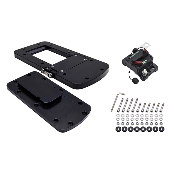 Hydra keulamoottorin asennussarja sisältää alumiinisen pikakiinnitysjalan sekä 60A automaattisulakkeen. Sopii Hydra keulasähkömoottorille.