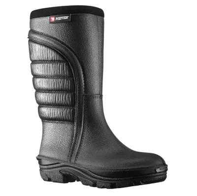 POLYVER Premium Safety Boots lämpösaappaat ovat laadukkaat ja lämpimät talvisaappaat korkealla varrella ja iskunkestävällä varvassuojalla. Kengät tarjoavat erinomaisen suojan jaloille jopa -40°C pakkasasteille. Saappaat ovat vedenpitävät sekä istuvat ja mukavat kävellä. Kengät ovat toimiviksi testattu erilaisissa sääolosuhteissa ja kovissa pakkaslukemissa. Materiaali on joustavaa ja taipuisaa myös erittäin alhaisissa lämpötiloissa ja 40% kevyempää, kuin kumi tai PVC -saappaat.